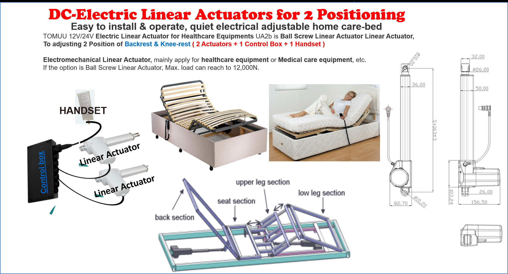 TOMUU 12VDC or 24VDC Electric Linear Actuator for Healthcare Equipment
